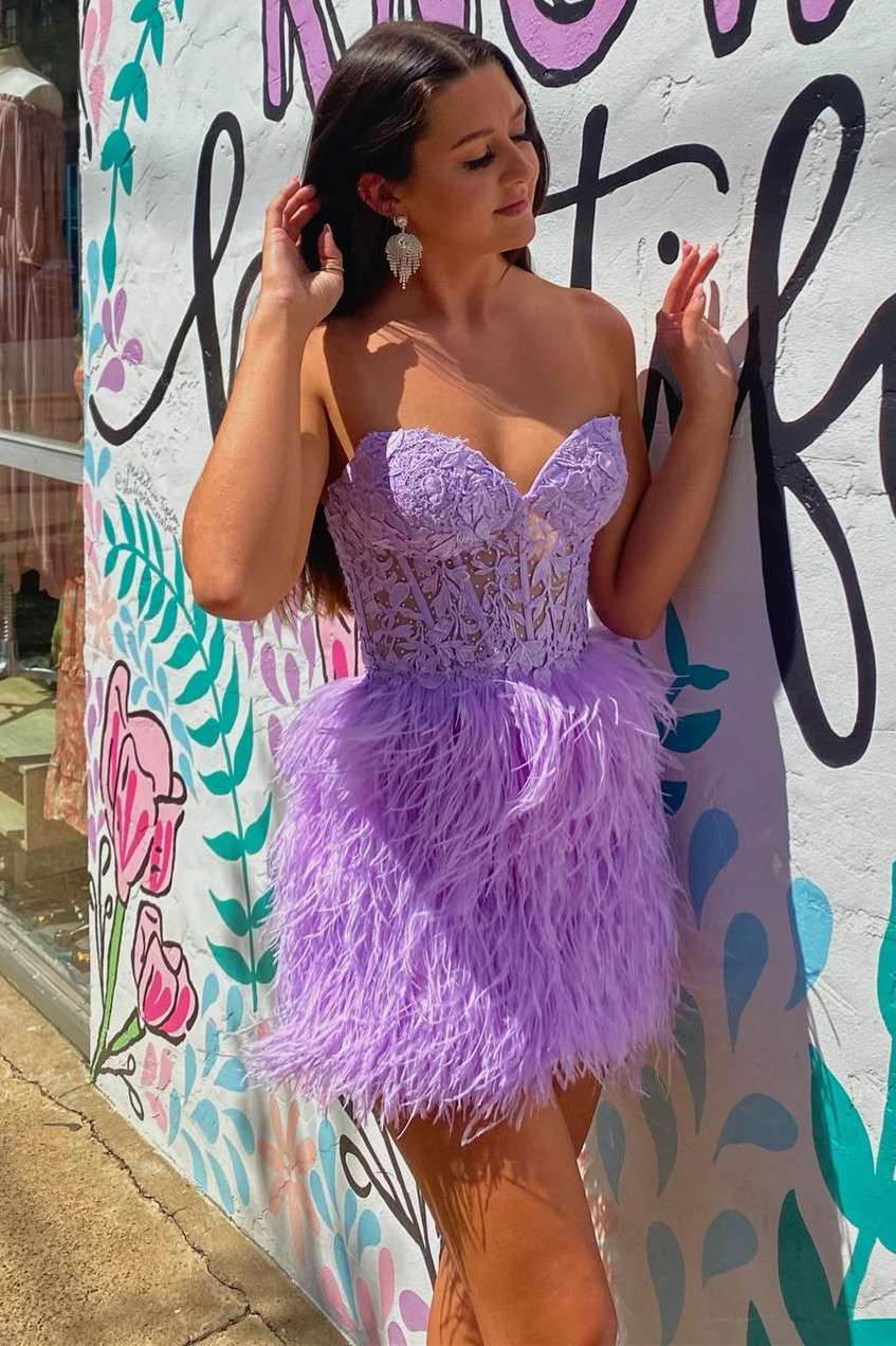 Ltp1751 Sweetheart Feather Skirt Lavender Tight Homecoming Dress Shor Laylatailor Shop